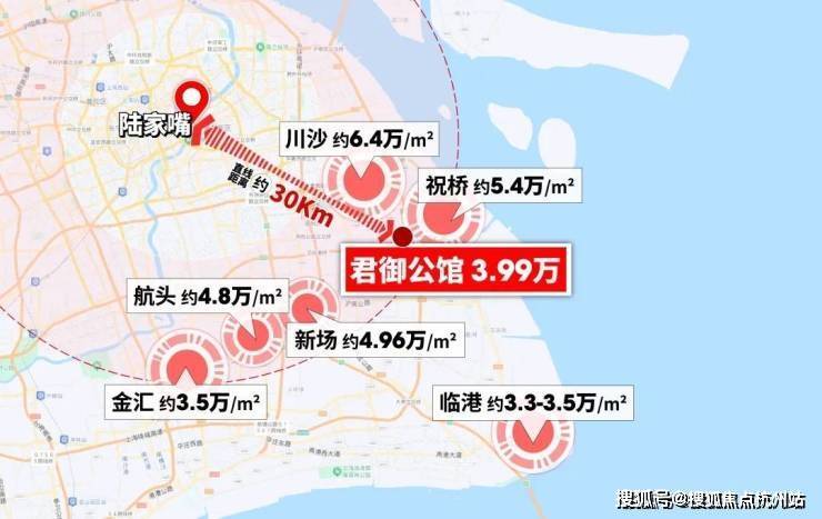 以陆家嘴为原点,30公里为半径,浦东几大刚需板块,祝桥、航头、新场新房均价全线逼近或超过5万/㎡。