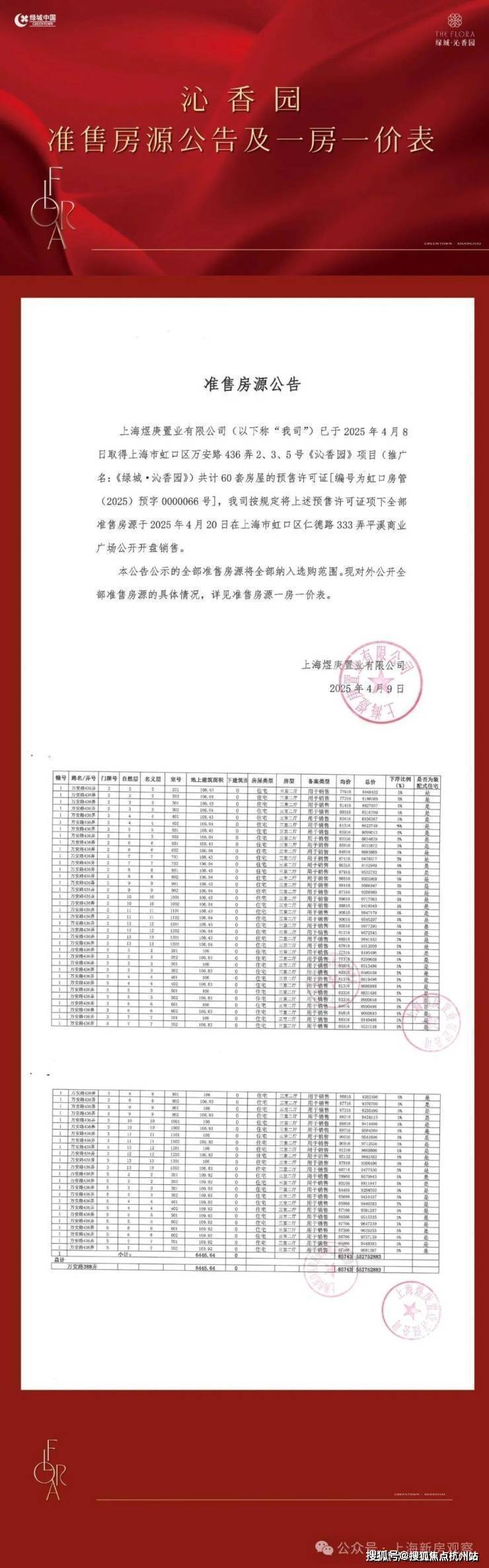最新消息!虹口·江湾品质新盘「绿城·沁香园」还有少量工抵房136㎡4房约136㎡洋房产品,总价1325-1362万;售楼处线上火热预约中!