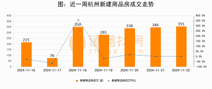 【杭州成交日报】11月22日新房成交355套、二手房322套;涨价房源46套