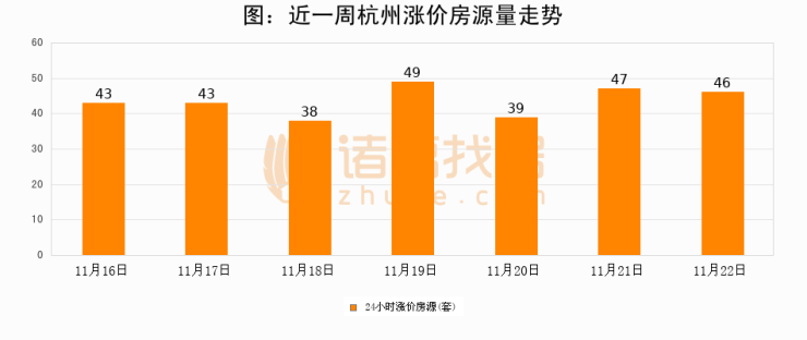 根据诸葛找房数据显示,杭州24小时涨价房源量为46套,较11月21日减少1套,环比下降2.1%。与此同时,涨价房源占比小幅回落,对于购房者来说是一个入市窗口期,购房者可抓住时机入市。