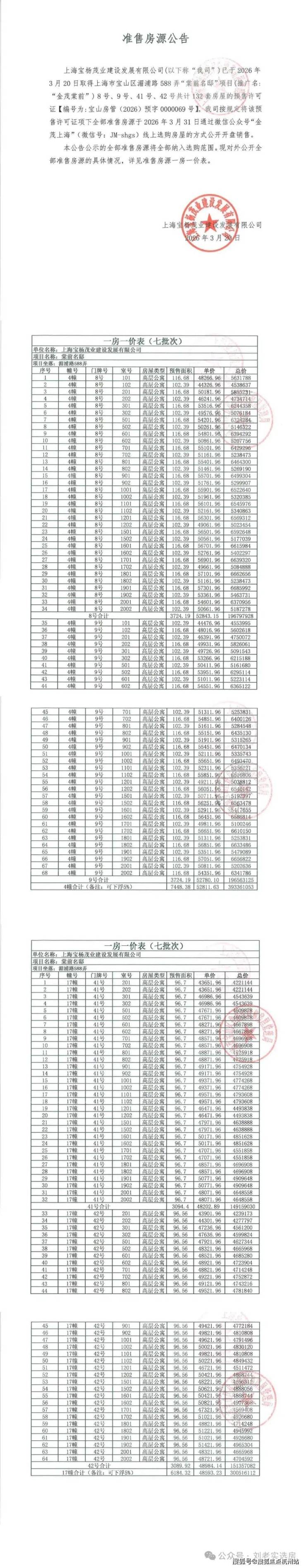本批次一房一价表如下: