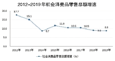 全年社会消费品零售总额6215亿元,增长8.8%,按消费类型统计,商品零售5505亿元,增长8.8%,餐饮收入710亿元,增长8.6%。限额以上批零单位可穿戴智能设备零售额增长38.4%,智能家用电器和音像器材增长21.7%;限额以上批零单位通过公共网络实现的商品零售增长20.0%,占限额以上批零单位商品零售总额的25.5%。