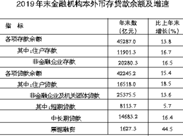 年末金融机构本外币存款余额45287.0亿元,增长13.8%;贷款余额42245.2亿元,增长15.4%。