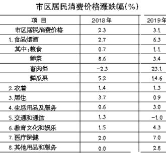 全年市区居民消费价格比上年上涨3.1%,其中医疗保健类价格上涨7.0%、食品烟酒类价格上涨6.3%。商品零售价格上涨3.1%。工业生产者出厂价格下降1.0%,工业生产者购进价格下降3.2%。