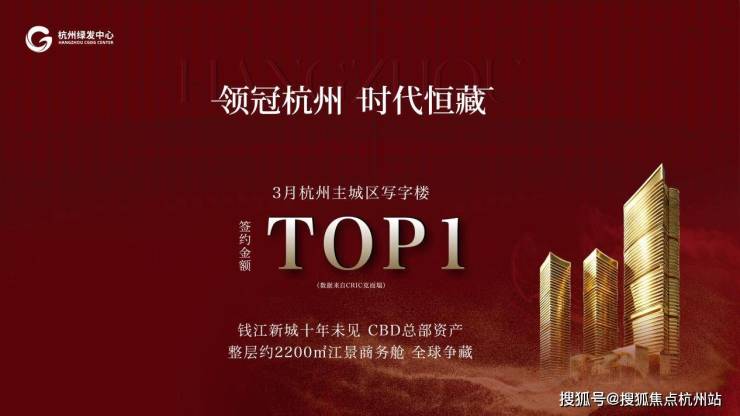 杭州绿发中心,这座矗立于钱江新城核心区的CBD封藏地标,在刚刚过去的3月,以单月劲销超2亿元的傲人成绩,荣膺“杭州3月写字楼总销金额TOP1”!不仅印证了市场的高度认可,更折射出全球头部企业对项目诸多“确定性价值”的坚定选择。