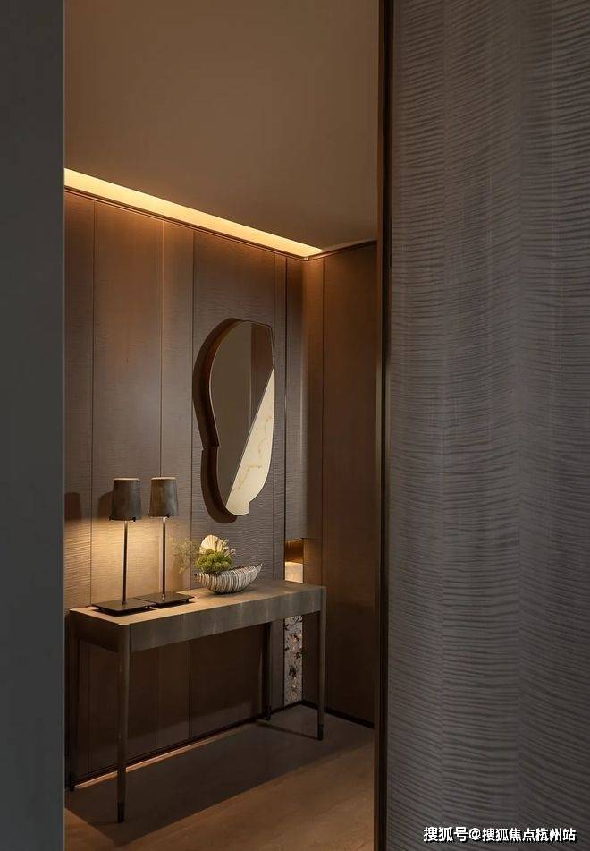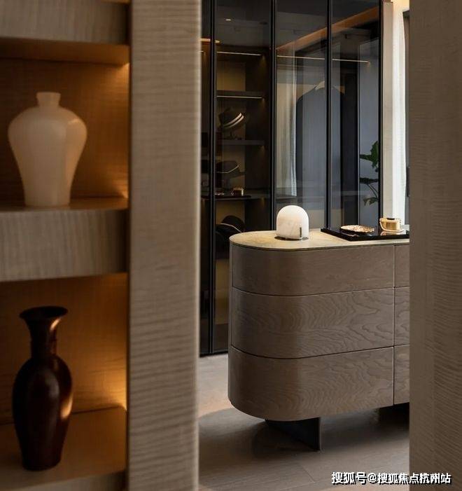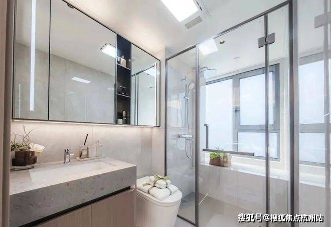 在细节上同样不遗余力。比如入户后的玄关柜是交付标准,打开厨房柜体、镜柜等各类收纳空间时均有惊喜;再如客厅和主卧均采用弧形吊顶,还有风暖浴霸、玄关顶面感应灯等细节,都透露出项目对品质生活的追求。