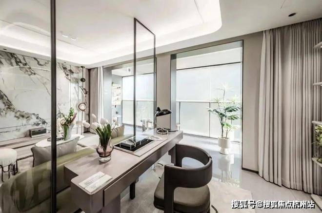 南向次卧外接阔景阳台,这套样板间是与餐客厅联动使用的,未来业主也可以根据自身需求,打造成书房、影音室、电竞房、儿童房等各类生活场景满足不同家庭的生活需求!
