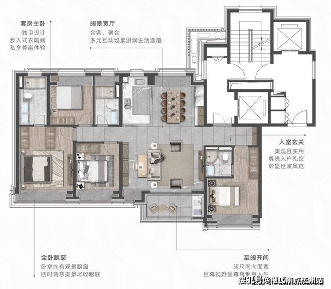 建面约155㎡奢悦四房,以双套间主卧设计,精准回应这一需求:私享主卧套间,形成互不干扰的生活圈,既能保留年轻人的社交主场,又为长辈打造专属天地,精准匹配新中产家庭的代际居住需求。南向社交宽厅,承载家庭聚会、朋友宴请、甚至孩子的生日派对,让每一份生活仪式感都有处安放。