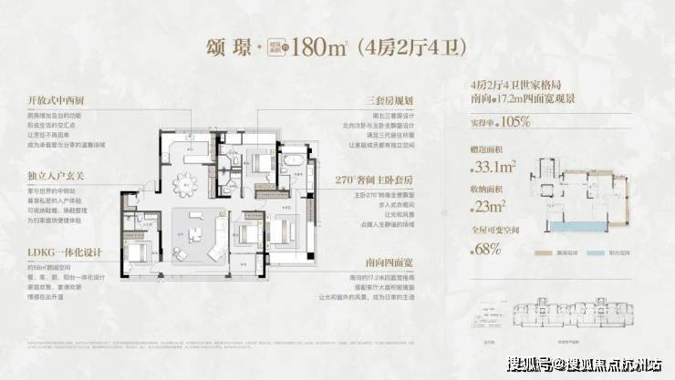 项目通过创新设计实现得房率98.7%-105%的突破,其中建面约180㎡户型赠送面积达约33.1㎡,在古城核心区堪称"空间奇迹"。