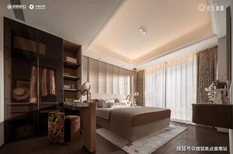 主卧套房的设计同样突破想象。整体面积约25㎡,更是在约270°转角飘窗的基础上,增设靠窗休闲沙发区,形成独立的“微型休憩系统”。