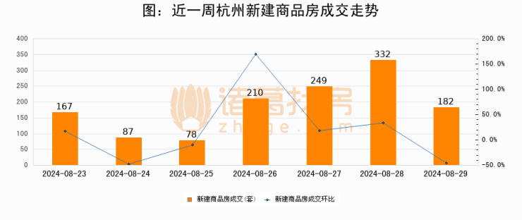 【杭州成交日报】08月29日新房成交182套、二手房187套;涨价房源25套