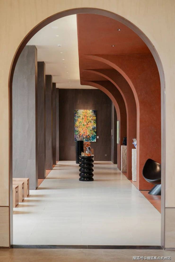 之所以有立体景观,是因为知海棠成了杭州计容新规落地后 之江首个将首层抬高的作品。归家动线也变成了沿廊道拾级而上,趣味盎然。
