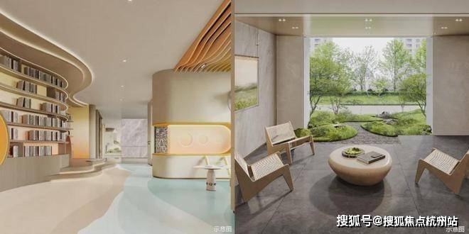 结合建筑、空间、自然环境关系,室内室外联动,呈现一个景观会客、海浪书屋、儿童休闲等多重功能的泛会所架空层,为全龄社交营造一个“有温度、有态度”的邻里空间。