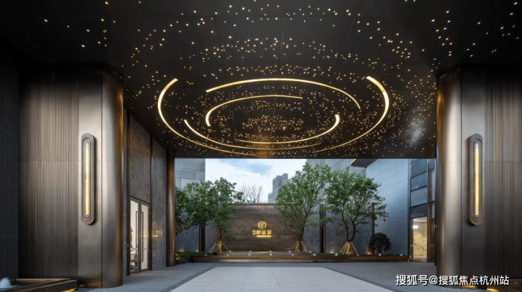 考究社区入口、舒适大堂入口、奢雅会所入口协同构建地上归家体系;艺术地下大堂营造简约轻奢的地下归家体系。