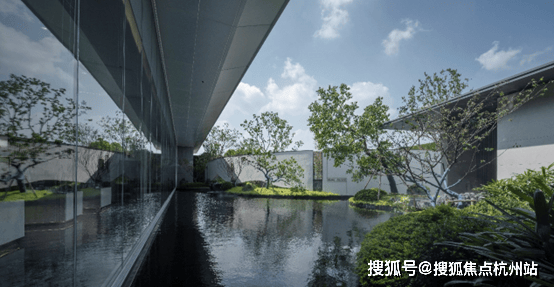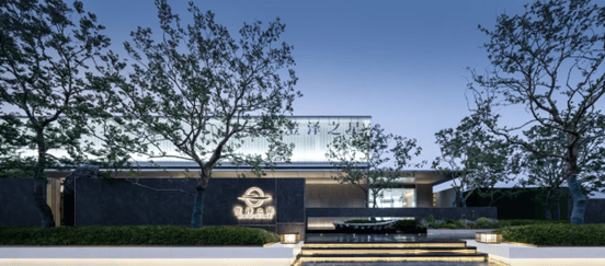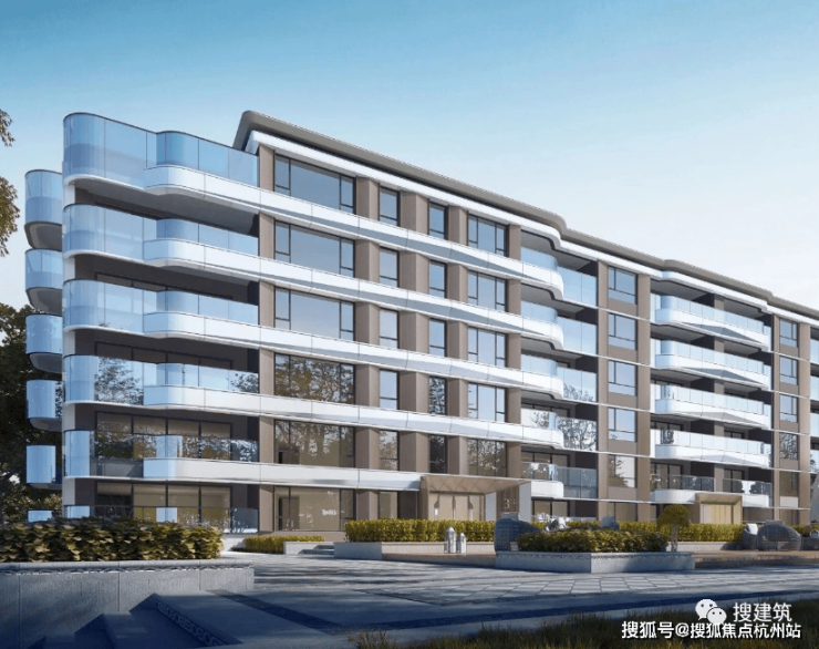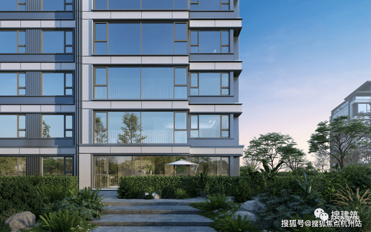 云庐建筑汲取新加坡豪宅Cluny Park Residence为灵感,延续绿城“庐系”经典风格,以“现代形·东方意·未来感”,采用大面积玻璃+金属格栅线条设计,打造极简现代立面。