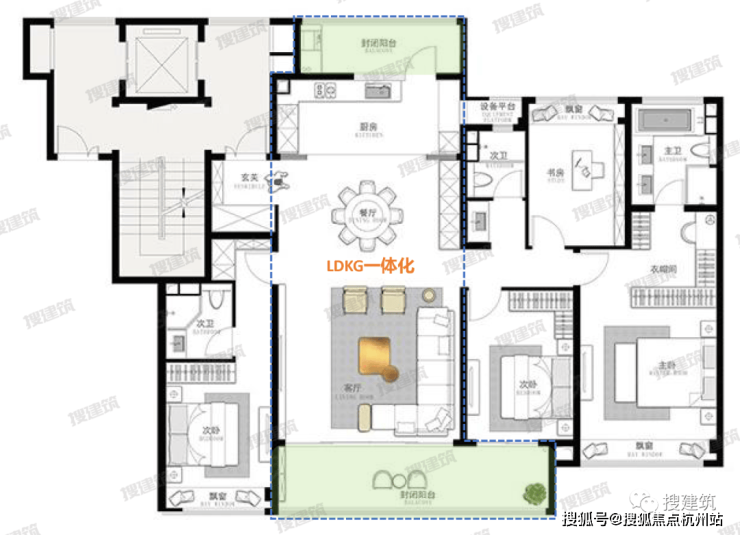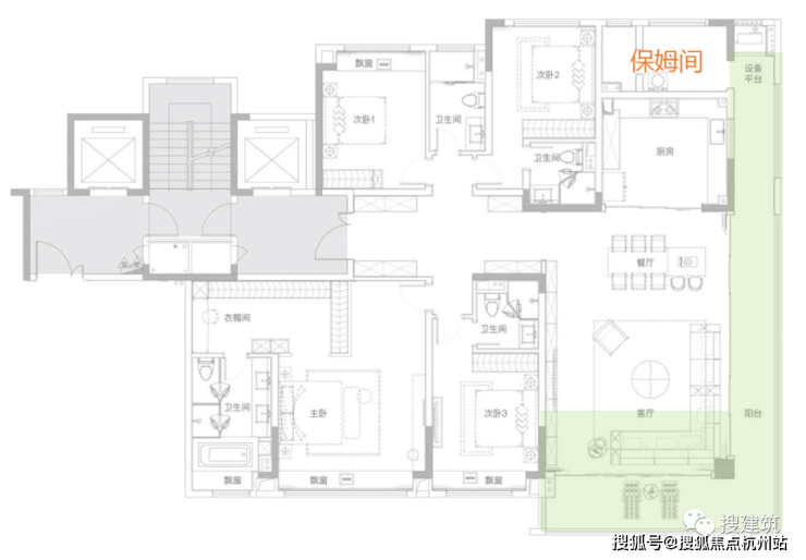 那么一些创新的大面积洋房户型,开始做3套房了,也不影响公区的舒适度。