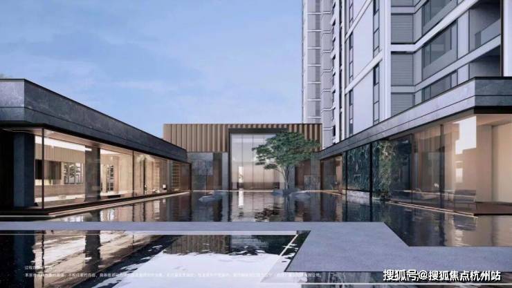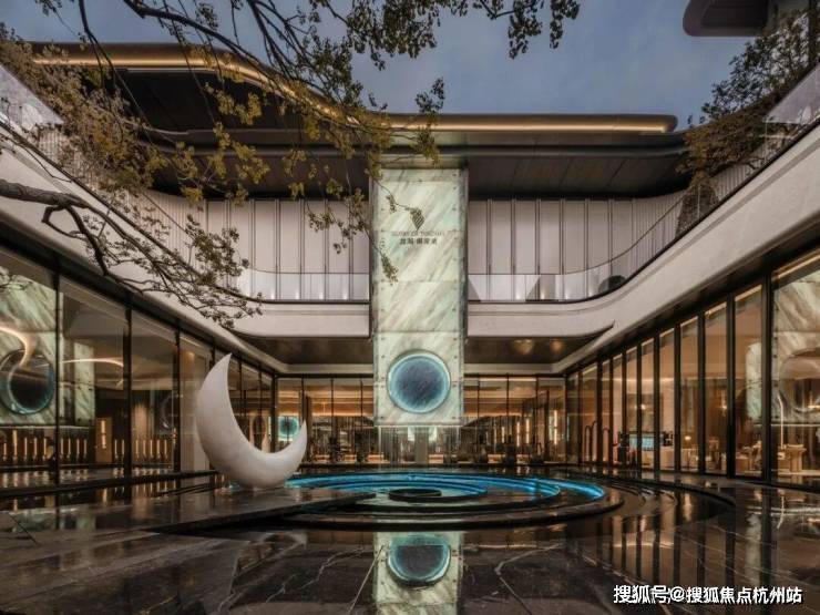 从前场进入会所内部,首层中心就是湖光水院,会所的点睛之笔,面积达约750㎡的沉静水面,可亲水互动,匠心独运。灵动的水景,宁心静气,整个会所的体验感会大不相同。水景工艺复杂,成本昂贵,后期维护费用也高,非标杆豪宅不能驾驭。