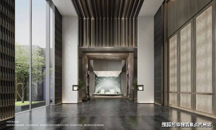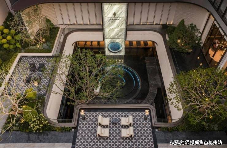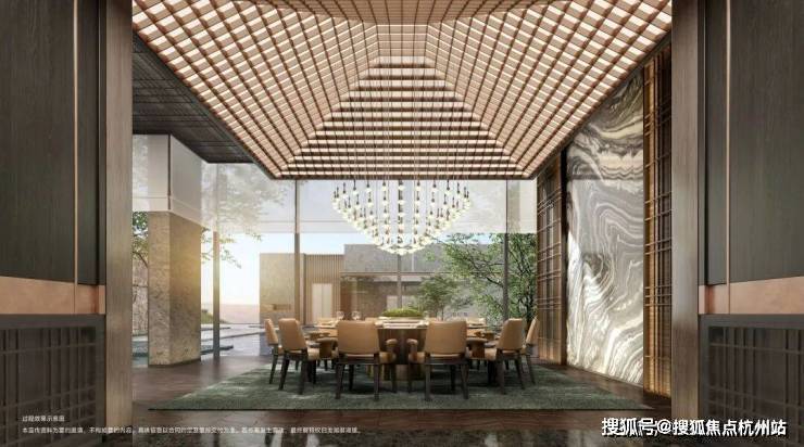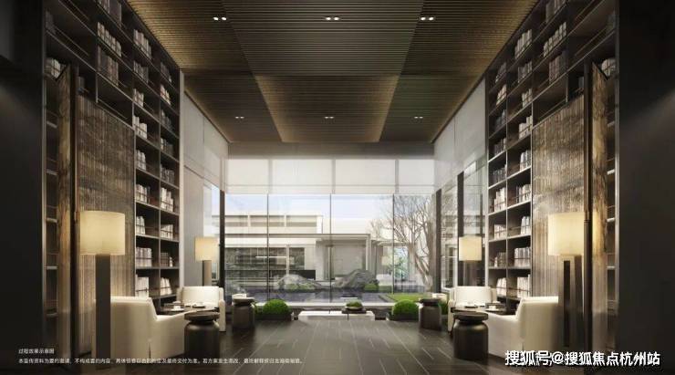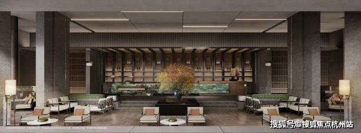 行政酒廊采用下沉式设计,复刻自西溪安达仕酒店,面朝灵秀水院,格调非同一般。此部分目前将会作为售楼部接待区呈现,后期会调整为会所的行政酒廊,可提前享受会所质感服务。