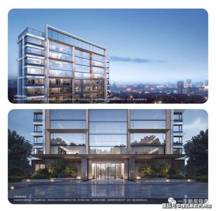 从建筑的效果图来看,武汉御湖境的外立面,光感柔和,通透感类似于玻璃幕墙,但更富于色调变化。