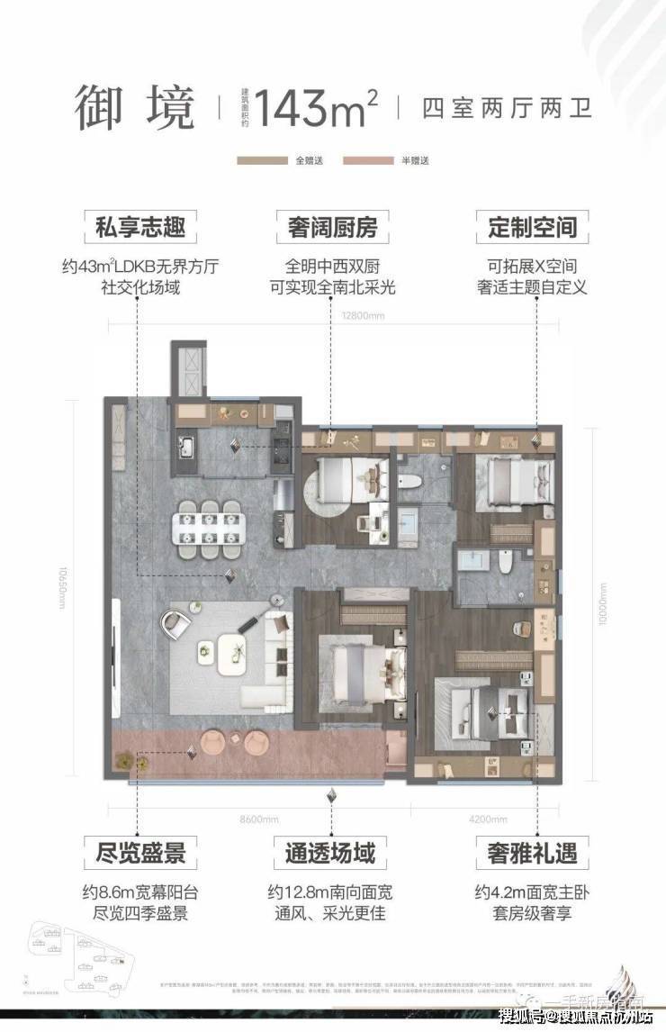 别墅级居住体验,该户型为龙湖入汉7年,豪宅产品力的集大成之作,豪宅中的奢侈品,非显赫大人物不奢藏。也是首发的经典代表作。