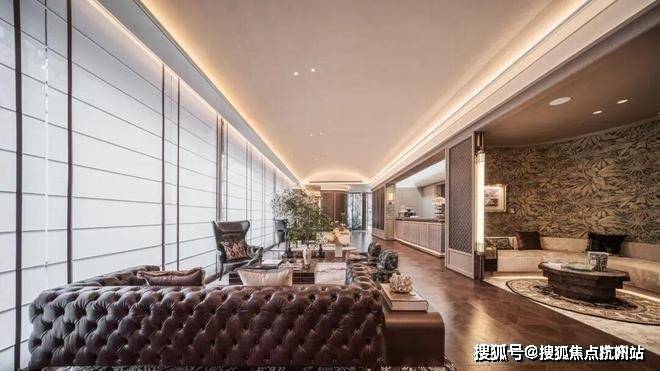 约17.2米环绕观景台:约238㎡户型的客餐厅,位于户型的顶端。自东向南环绕270度的观景台长达约17.2米,在这样的客厅,甚至可以踱步欣赏窗外的满眼梧桐。独立会客厅,可以做小茶室或棋牌,更深一步的隐私感,为专享客群定制。