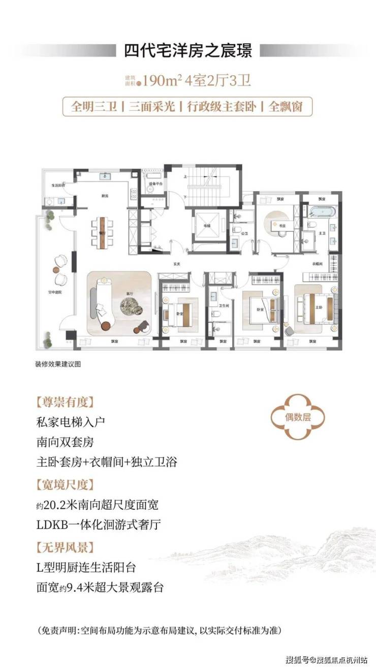 四代宅洋房:建面156-190㎡,奇偶错层露台设计,南向面宽14.9-20.2米,装修标准≥2000元/