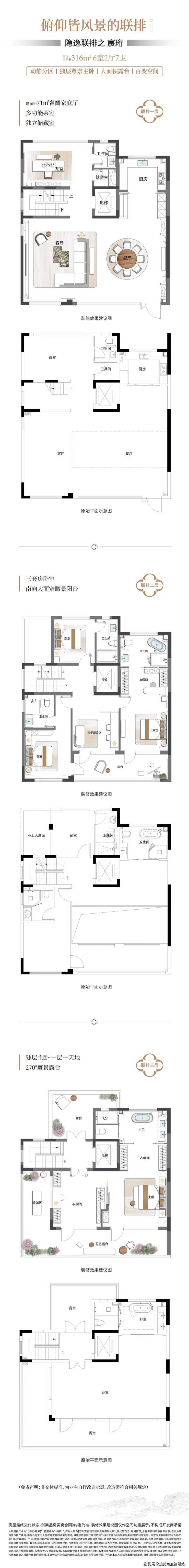 联排别墅:建面285-316㎡,全套房设计,南向大面宽,部分含私家花园及星空露台