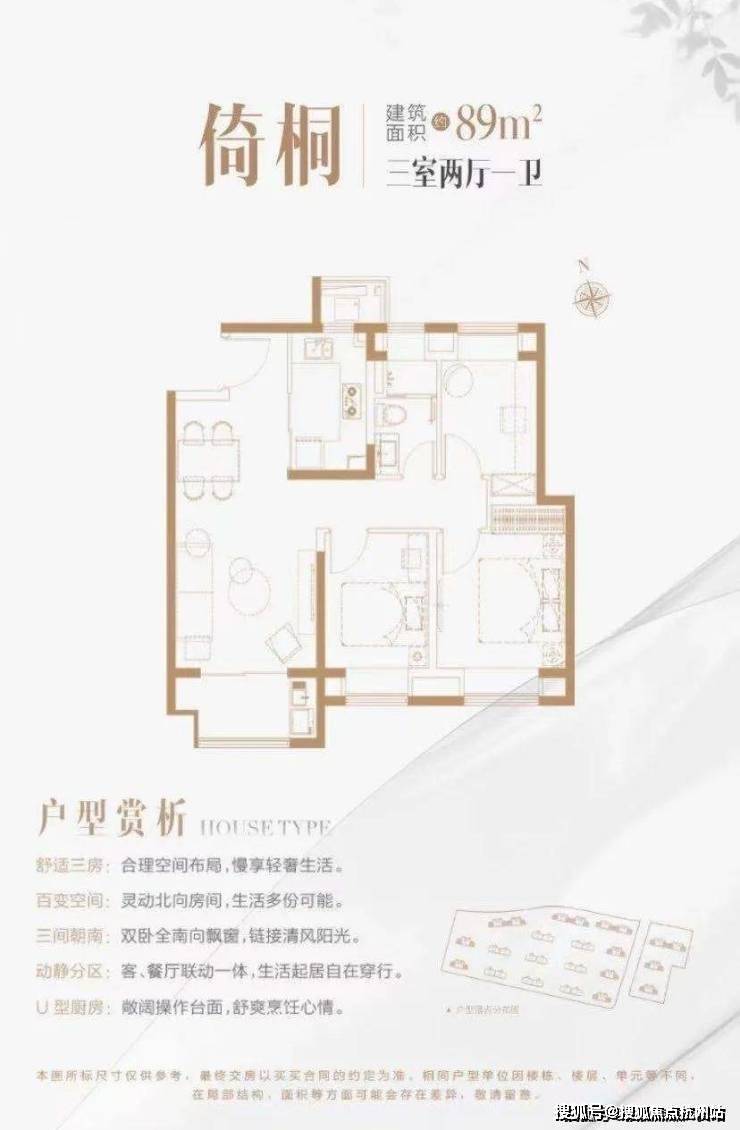 小户型,大考量,大开间、短进深的布局;餐客厅设计分而不离,精心营造空间阔度,合理动线打造弹性日常;双卧全南向飘窗,以舒适格局彰显居家气度.