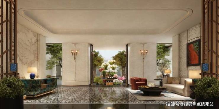 以 玉兰门庭—迎归大堂—莳花荟 为主轴,敬献步履生辉的归家艺旅: 玉兰门庭 如繁花盛绽, 尊华瑞鳞水景 聚运生财, 双尊铜狮 镇守家宅; 迎归大堂 流转光影艺韵, 百羽栖澜艺术雕塑、芦海宸韵非遗绣作 流淌摩登气韵; 莳花荟中央会客厅 移步异景,献映会客、休闲等雅会。