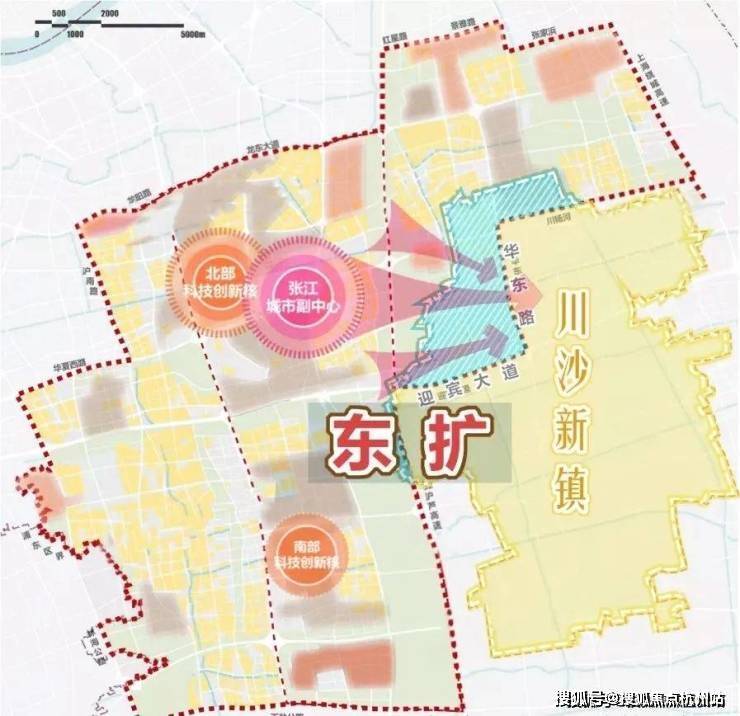2035川沙规划发展目标:“形成以国际交往、旅游度假、历史文化及生态休闲为主导的浦东中部地区活力高地。”恰好川沙与张江科学城在向东拓、国际旅游度假区在向东扩、浦东枢纽东站在建三大动作遥相呼应。