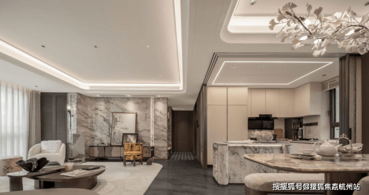 【海上·清和玺】希望业主的每一次归家,都能有属于自己的社交空间。整个前厅的接待空间不是一个过渡空间,而是一个真正为归家营造惬意分享的生活场。