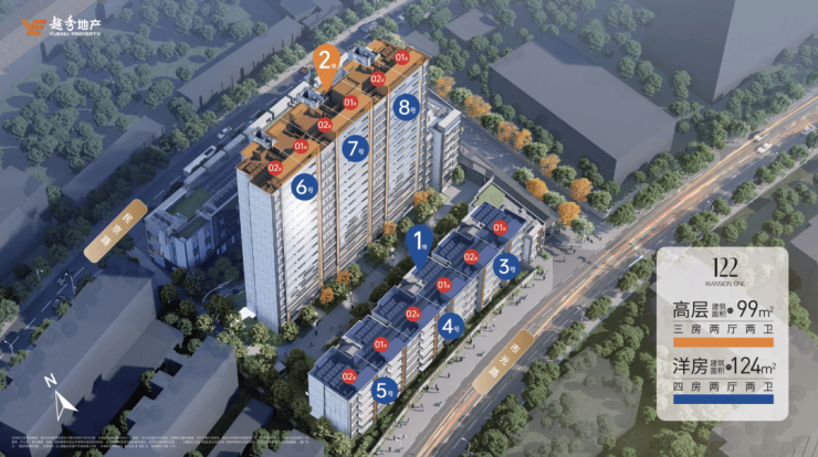 主推建面约 99-124㎡3-4房