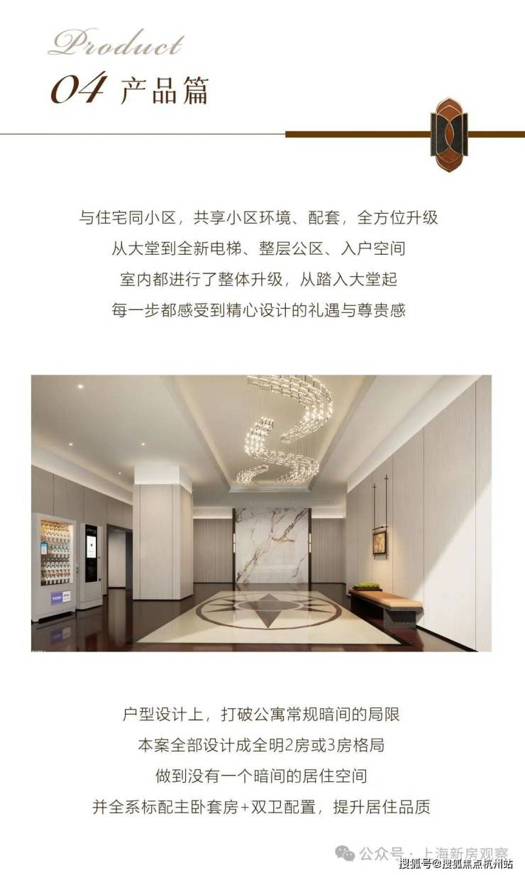 户型设计:打破公寓常规暗间局限,全部设计成全明 2 房或 3 房格局,全系标配主卧套房 + 双卫配置。