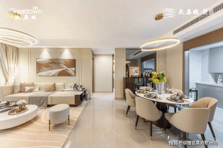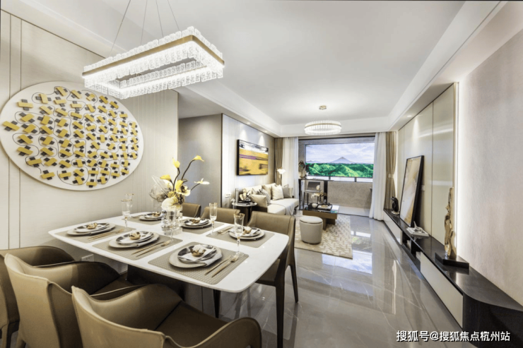 餐客厅同宽设计 ,让动区的空间感更为阔绰,小三房甚至能够摆放六人桌,家庭派对式餐厅,就是大名城映辰献给客户的知心诚意。
