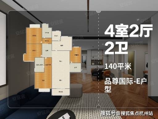 3. 建面约 140㎡ 4 房 2 厅 2 卫(主力四房)