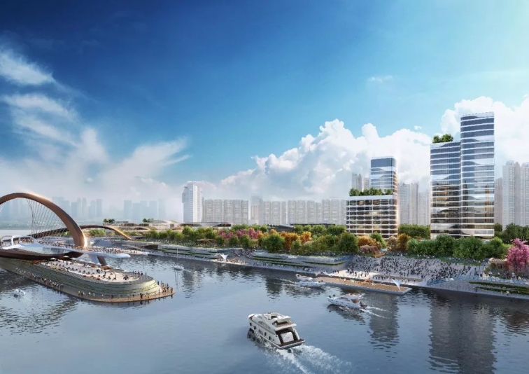 公示方案中另一大亮点是景观步行桥,它横跨运河,将分布在运河两岸的江河汇项目紧密地联系起来,流线景观造型的设计使整座桥显得十分酷炫。