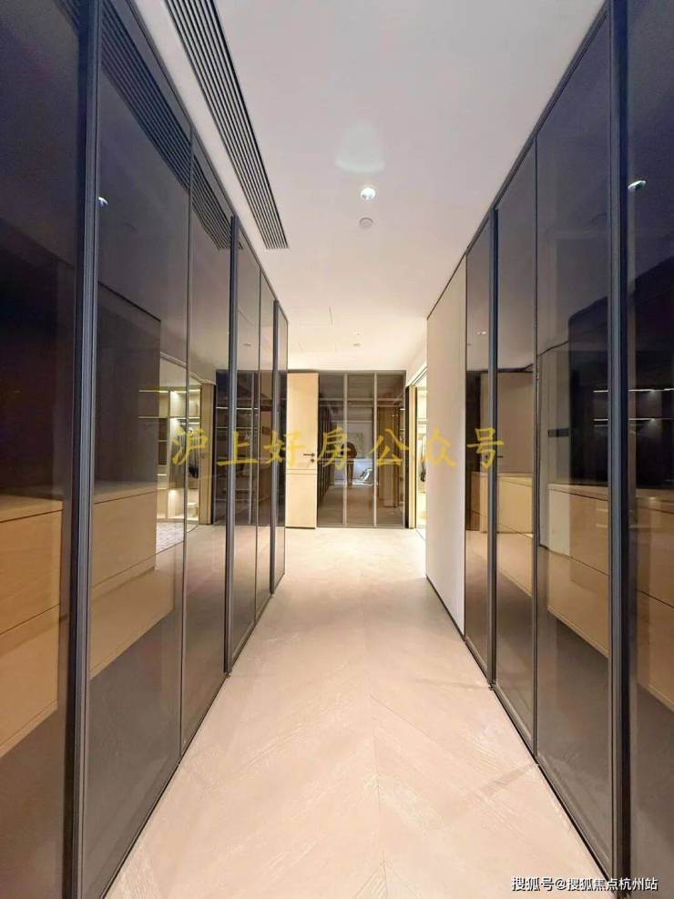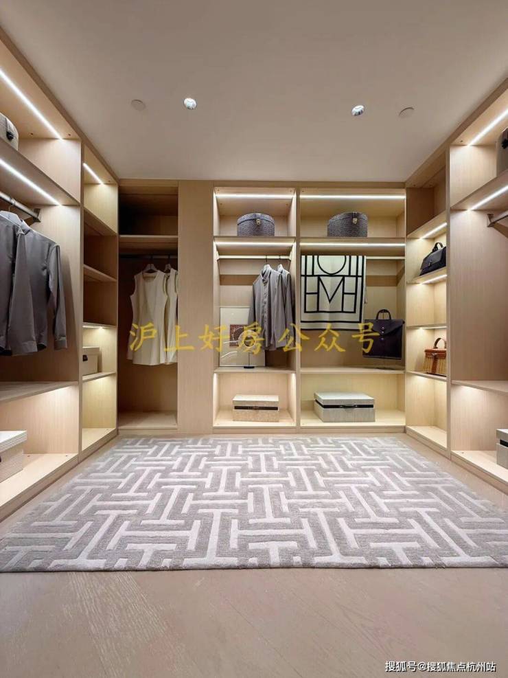 收纳空间也诚意满满,建面约195㎡主卧带双排衣柜,建面约174㎡带双衣帽柜,男女主人可分区收纳。
