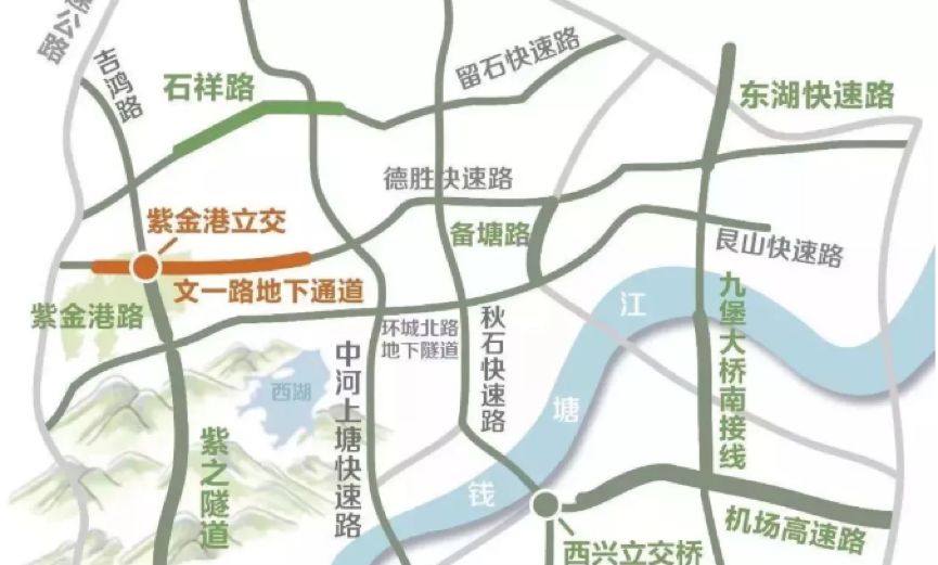 文一路地下通道全长5.8公里,通车后,德胜高架在保俶北路落地后进入文一路地下通道,5分钟后就能到达紫金港立交。