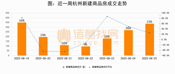 【杭州成交日报】06月25日新房成交336套、二手房196套;涨价房源21套