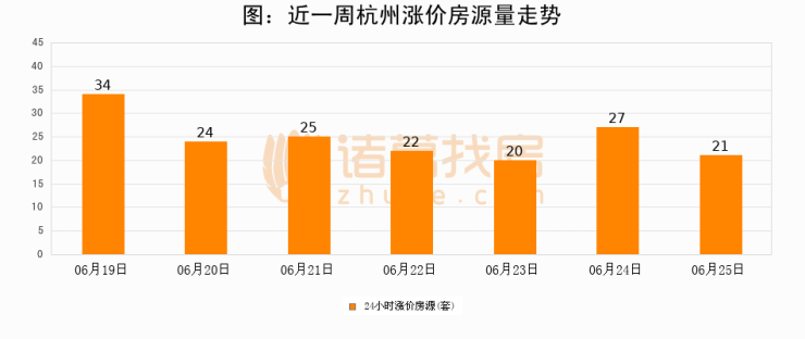根据诸葛找房数据显示,杭州24小时涨价房源量为21套,较06月24日减少6套,环比下降22.2%。与此同时,涨价房源占比小幅回落,对于购房者来说是一个入市窗口期,购房者可抓住时机入市。