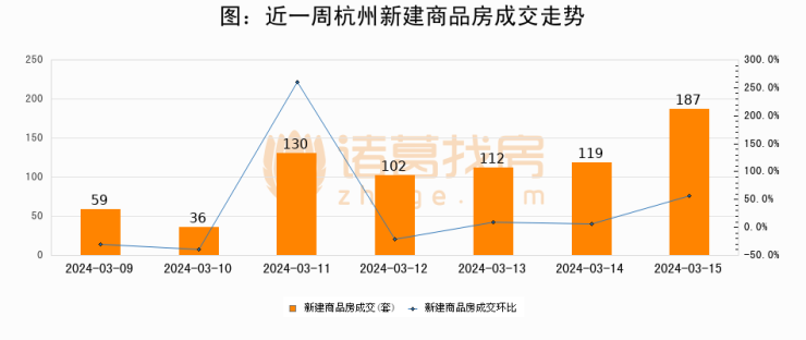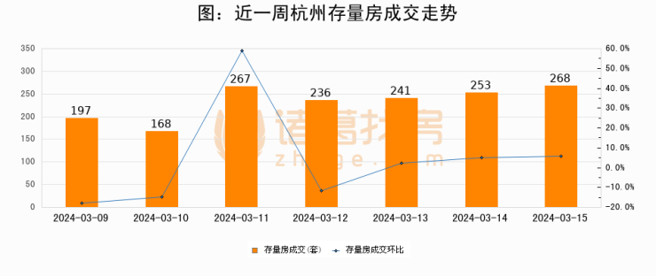 【杭州成交日报】03月15日新房成交187套、二手房268套;涨价房源194套