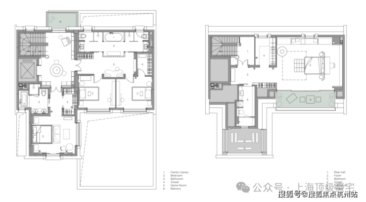 二层设有儿童区和父母房间。所有房间都围绕庭院布置,以充分利用景观视野。我们还将楼梯厅空间改造成家庭图书馆——在这个原本私密的楼层创造了一个公共空间。这为家庭成员增加了除客厅和地下室之外的又一互动空间,强化了我们对现代上海家庭——更多交通和爱的理念。