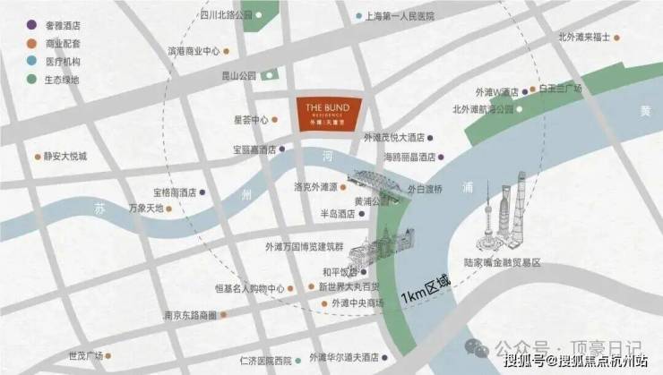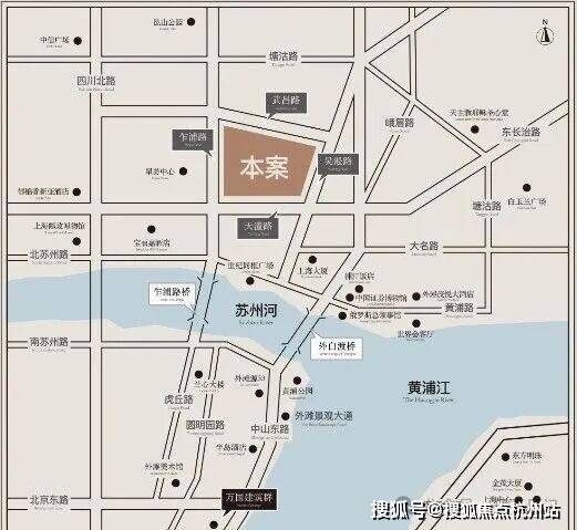 再看项目的位置,选址于黄浦江与苏州河交汇处,距离上海著名的外白渡桥仅约260米,家门巷口的这道湾就是黄浦江精华之所在,从这里可以直接步行至外滩。这里是上海市中心真正核心的优质地段!