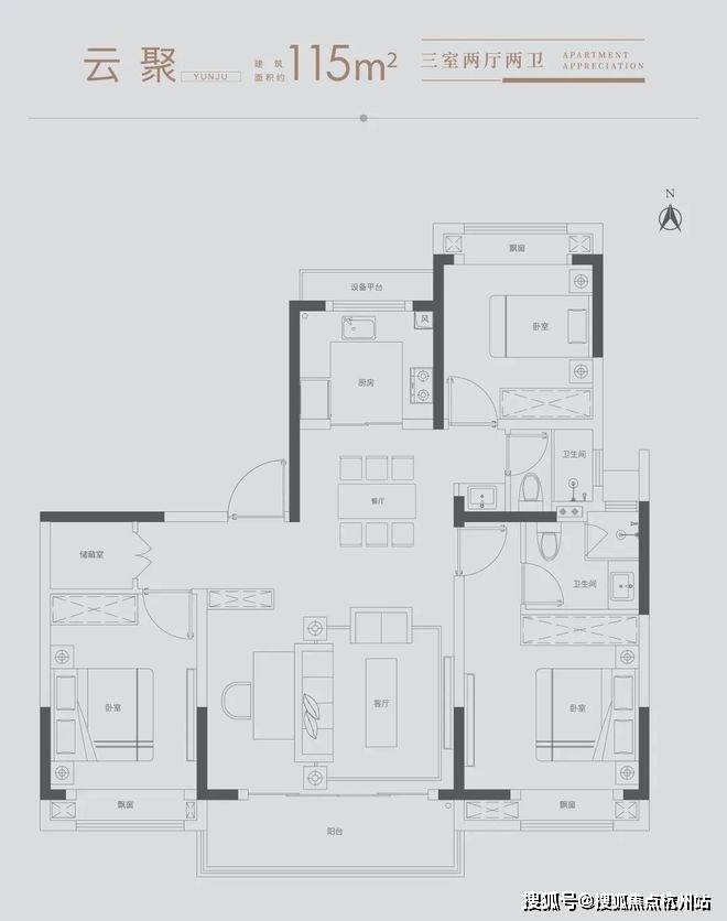 雅致三房:满足三口之家所需,北向房间可改造书房,理想生活一步到位