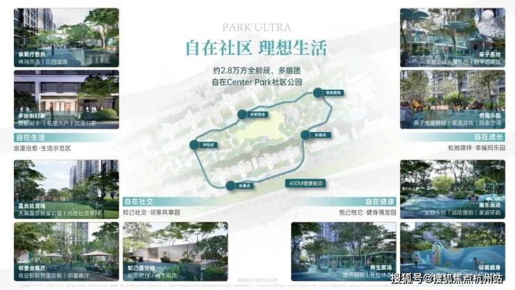 「自在社区 公园谧境」社区景观以“自然、自在、自由“的Center Park城市公园理念,规划约2.8万方全龄段、多组团社区公园谧境,围合布局约1.3万方park ultra中央公园,以自在健康、自在生活、自在社交、自在成长4大功能组团,打造全龄、全功能、全家庭体验的理想生活场域。