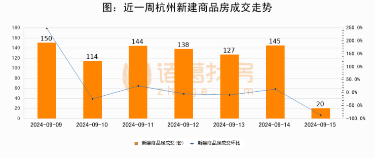 【杭州成交日报】09月15日新房成交20套、二手房129套;涨价房源21套