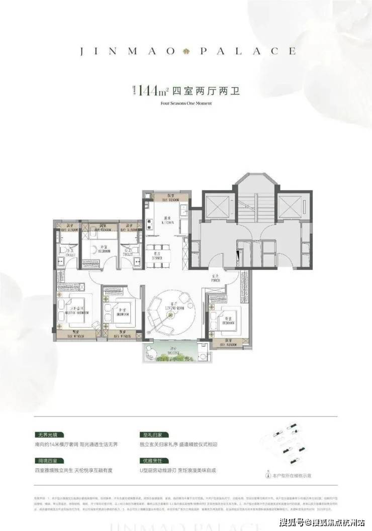 ● 建面约144㎡4房:同价格在杨浦只有百平米3房可选。