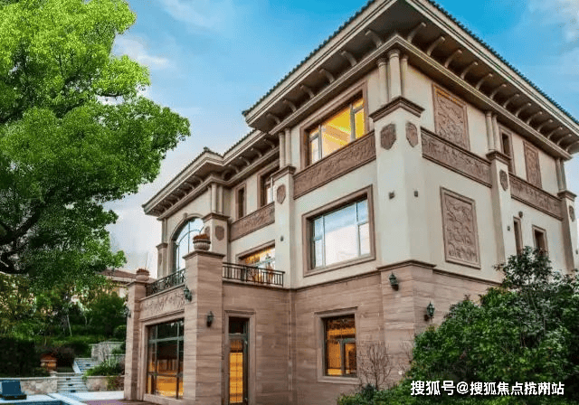 航拍俯瞰,浓荫绿树,这可不是普通别墅区可比拟的,每一棵树没个几十年可长不到这尺度啊。关键是,合生东郊别墅可是在上海,内环旁哦!外立面,澳洲砂岩配以砂岩浮雕。私家大花园,近三个篮球场大小,室内电梯都是标配。