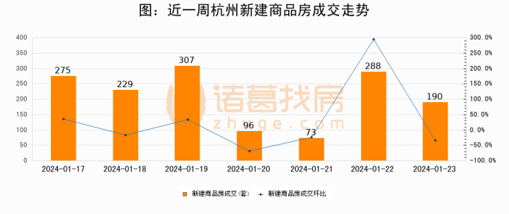 【杭州成交日报】01月23日新房成交190套、二手房180套;涨价房源86套