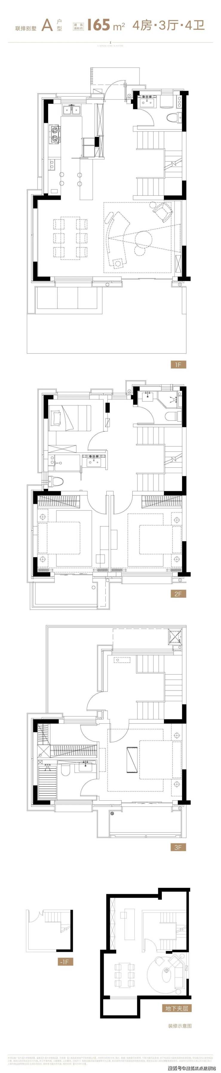 项目主力有建面约158㎡、165㎡联排别墅户型, 地上三层+地下空间,设置 地下采光井+星空露台 等,真正做到了 独门独户、有天有地、超享空间!
